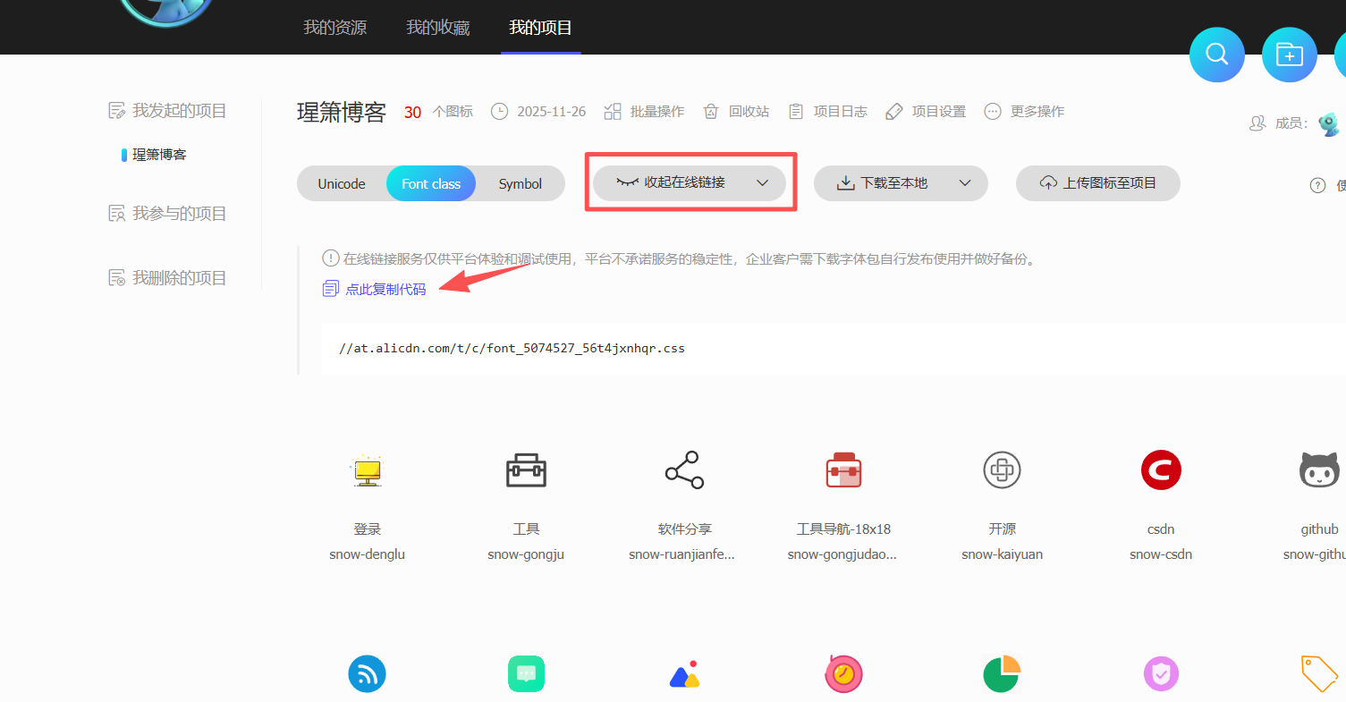 然后复制图标的代码即可替换完成